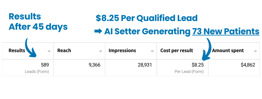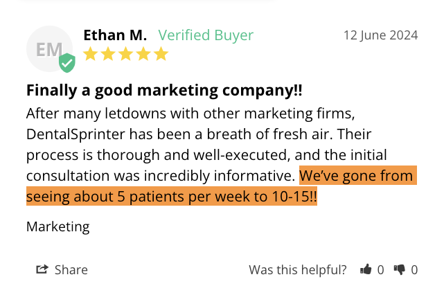 3-6 new patients per week organically. Partnered with multiple marketing firms with minimal success.